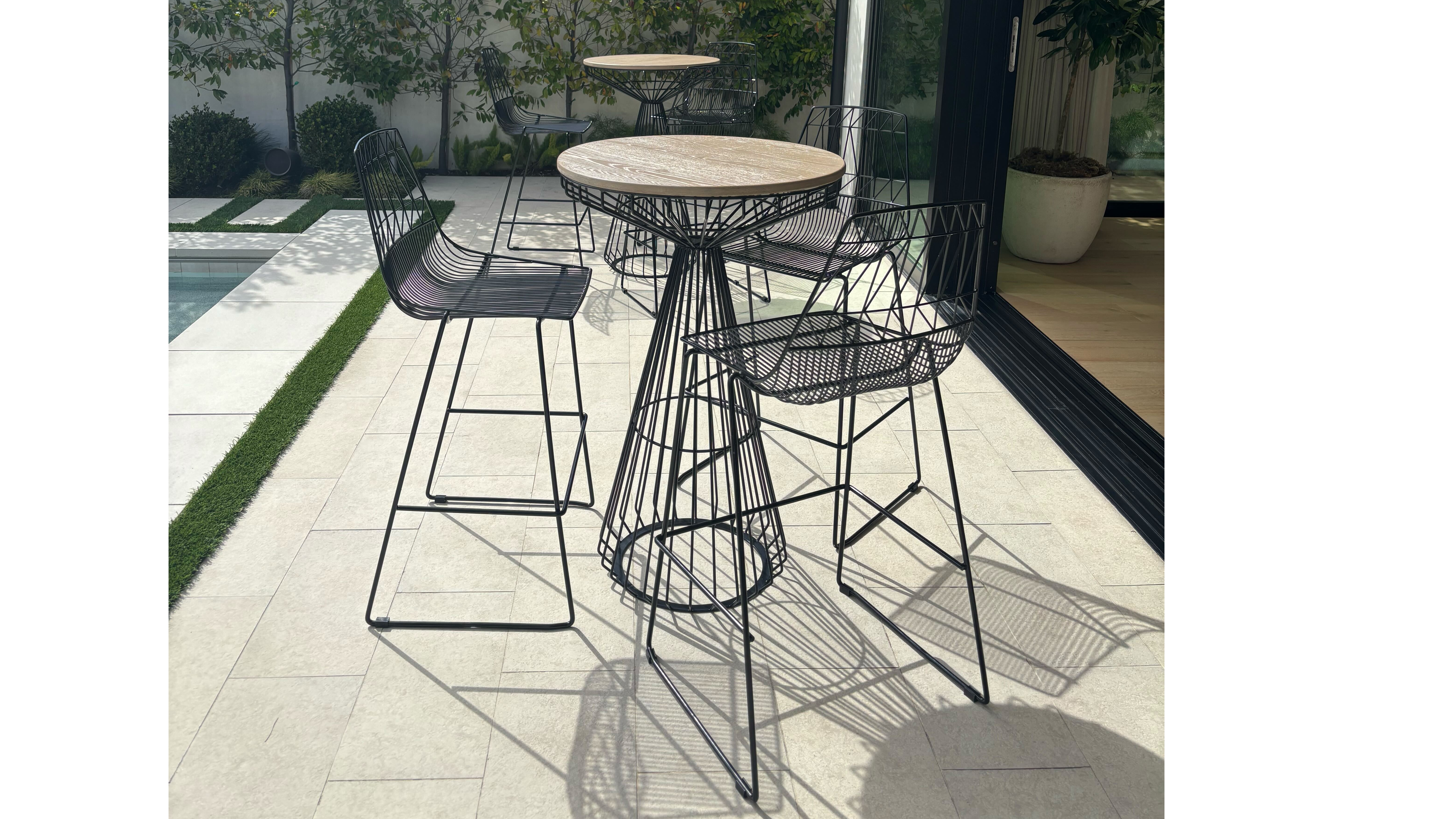 Modern metal barstool. Dimensions: 21L x 19W x 45H. Matching belly bar table additional.