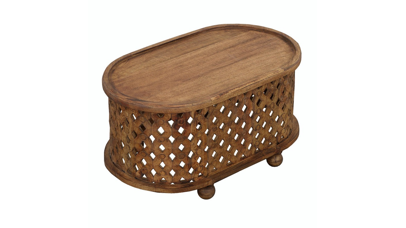style. It's made of solid mango wood that displays wood knots and