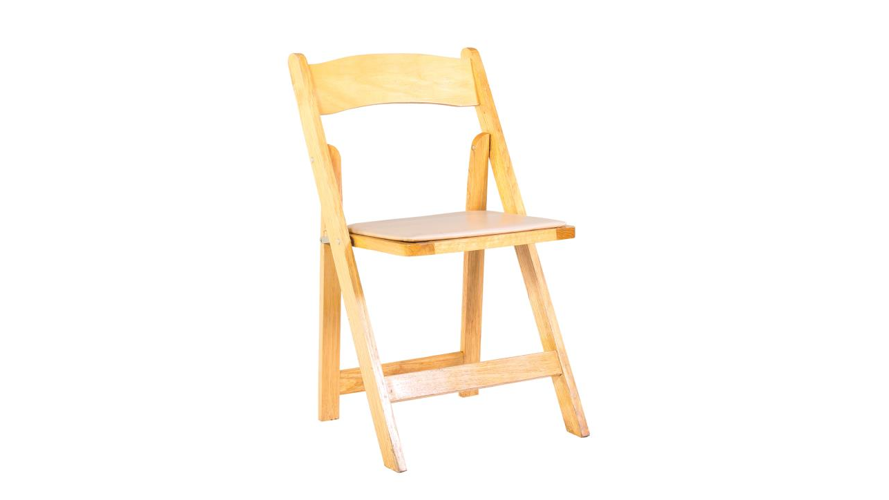Natural Wood Folding Chair with Pad Catalog » Chairs » Folding » Natural Wood Folding Chair with Pad Folding 12 24 48 Previous Next Natural Wood Folding Chair with Pad $3.85 / Rental Price Add Item Dimensions: 18"L x 16"W x 34"H. Seat Height: 20"H. Tags: Folding Know your event date/time? Set it now. Order Start Order End Related Products White Resin Folding Chair with PadSamsonite Folding ChairFruitwood Folding Chair with PadBlack Resin Folding Chair with Pad