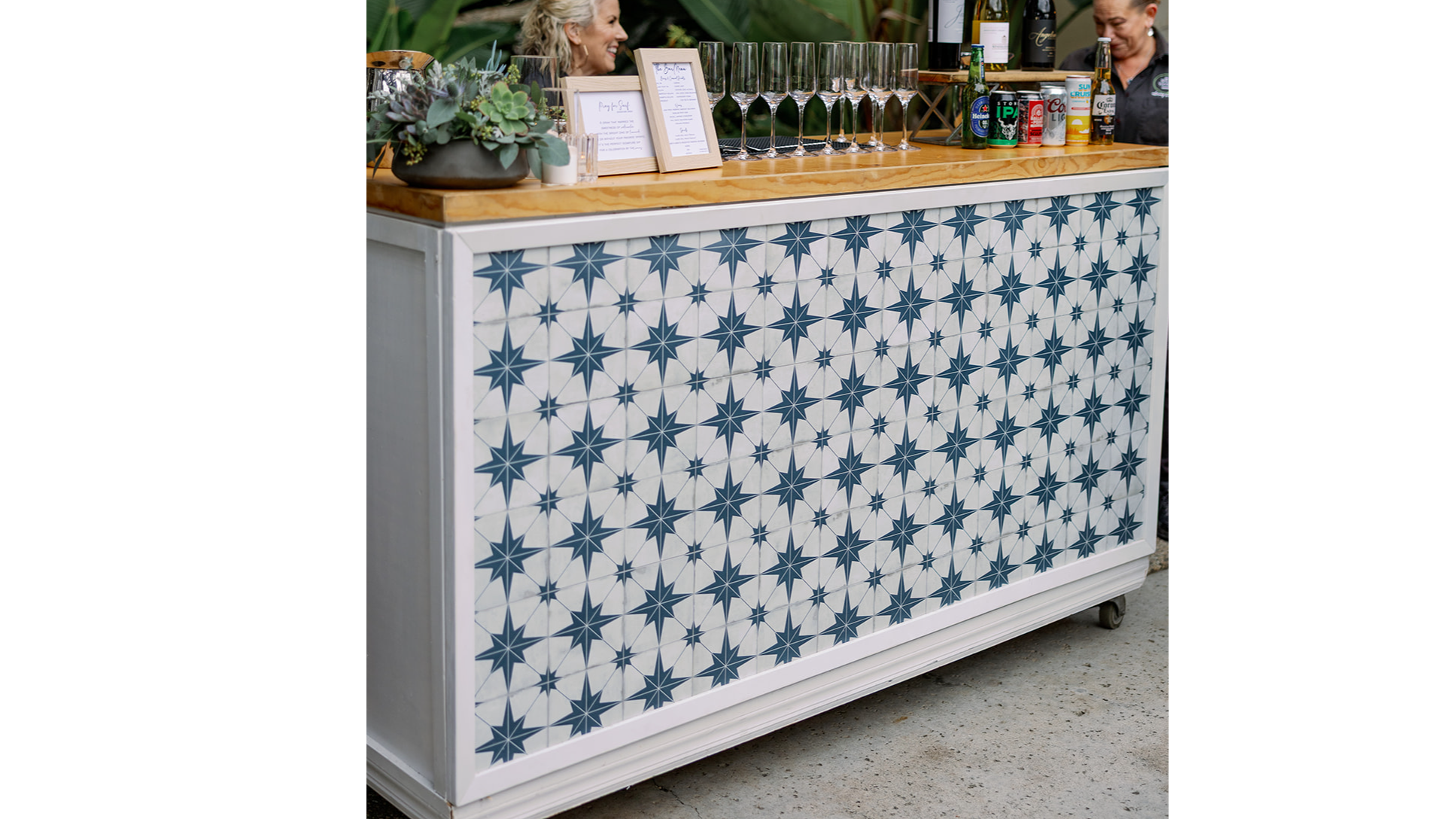 White and Navy Mosaic Tiled Bar Catalog » Bar » Bars » White and Navy Mosaic Tiled Bar Bars 12 24 48 Previous Next White and Navy Mosaic Tiled Bar $385 / Rental Price Add Item Tags: Bars Know your event date/time? Set it now. Order Start Order End Related Products Rattan Bar6′ Tuscan Wood Bar1/4 Round Strand Silver and Black Bar1/4 Round Strand Silver and White Bar